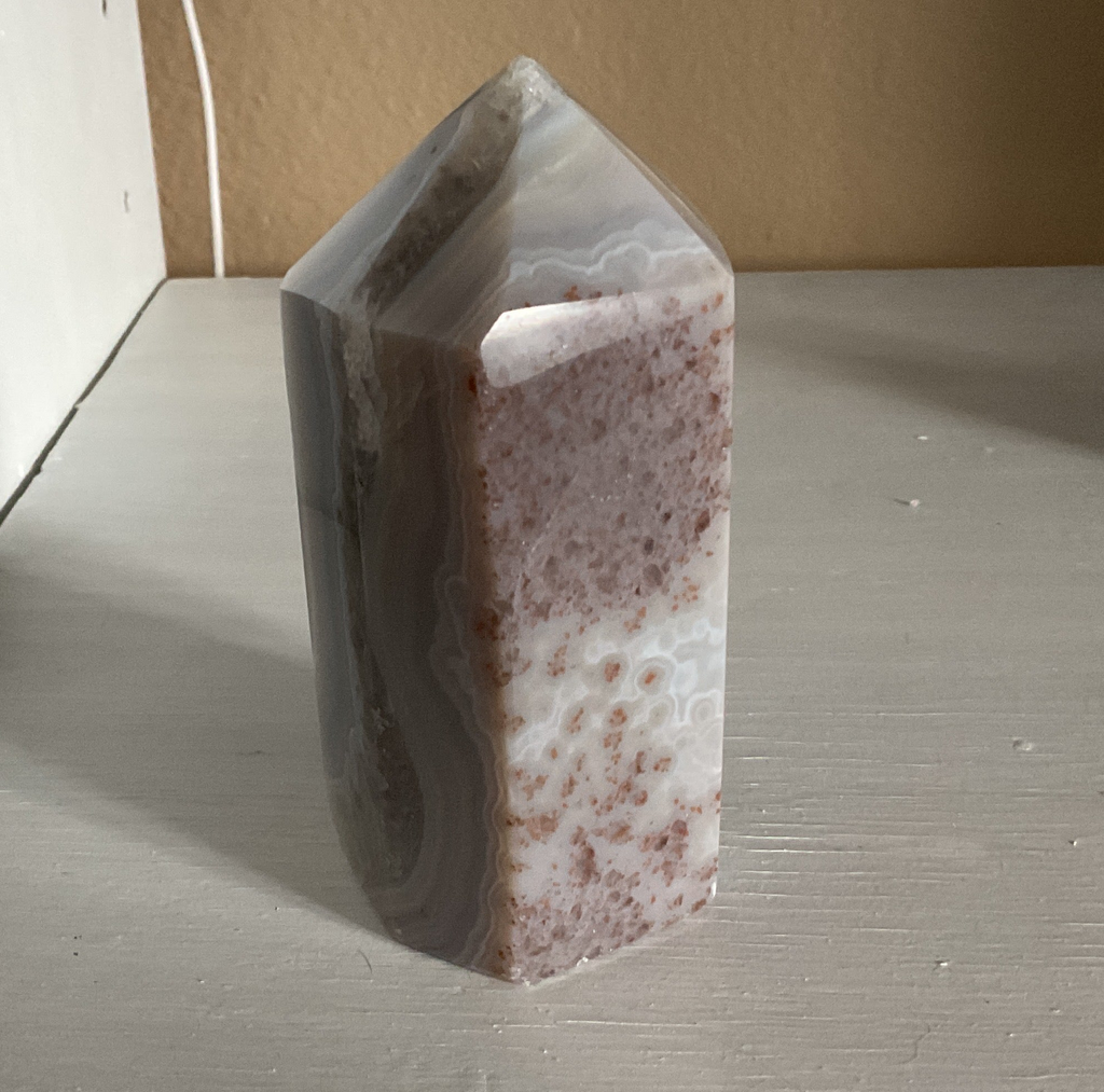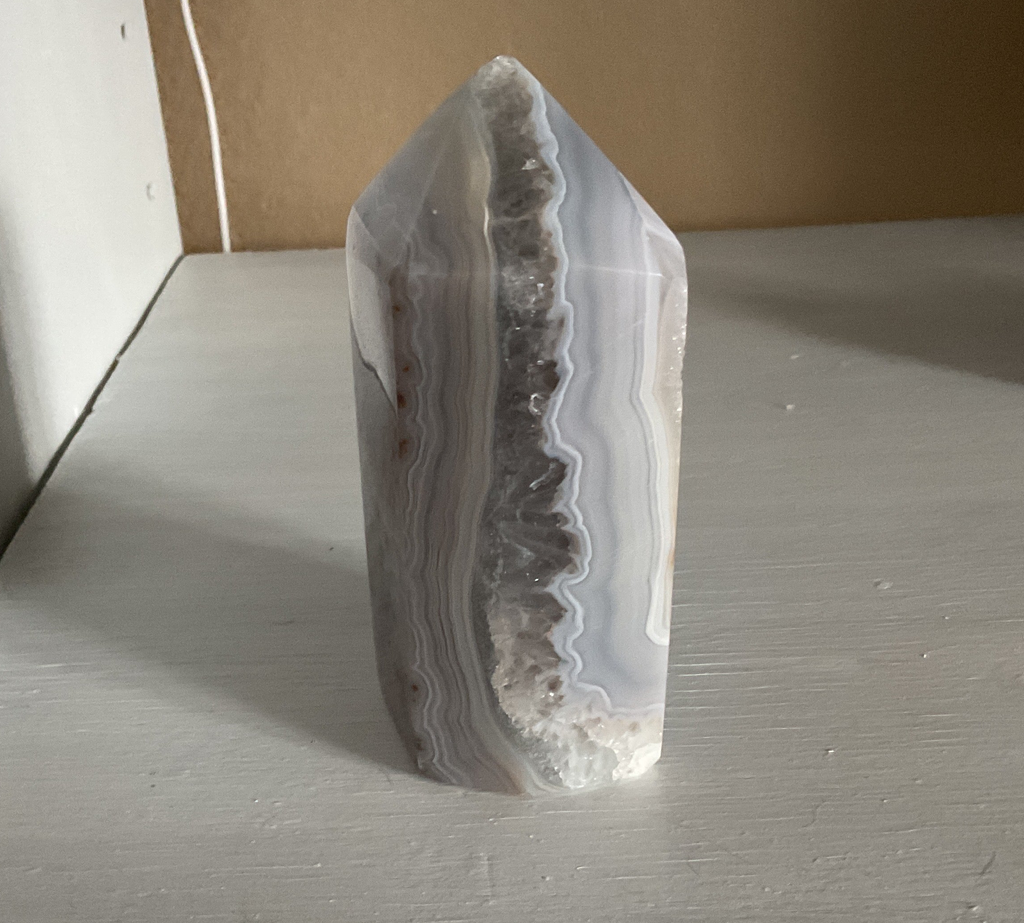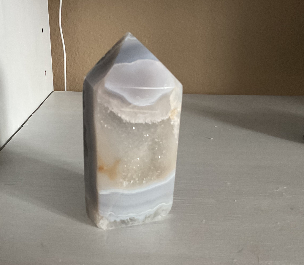 Natural Agate point with druzy