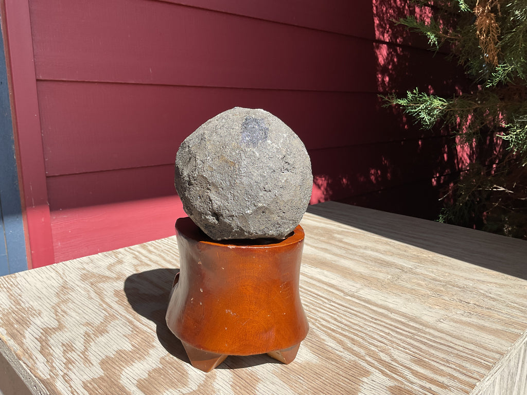Natural polished front Grape Jelly Amethyst specimen on wood stand